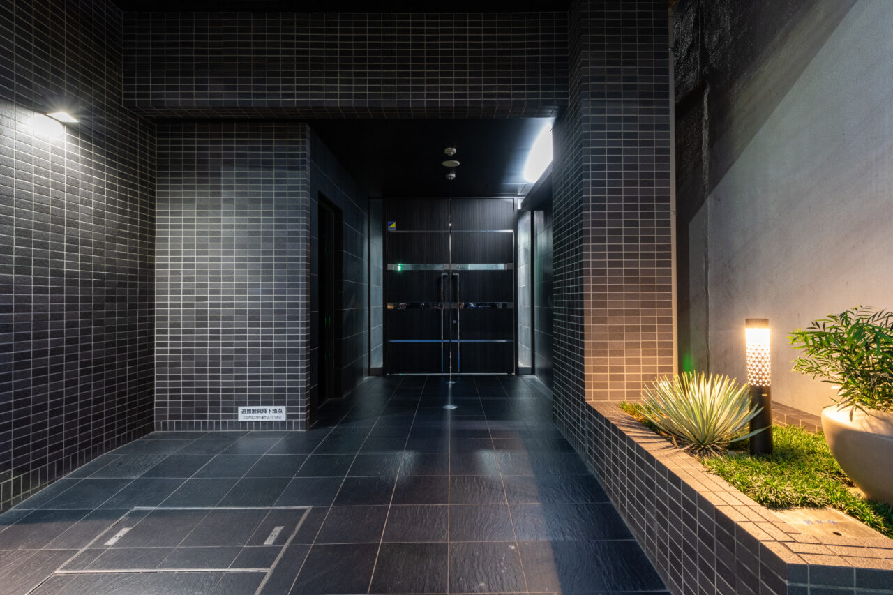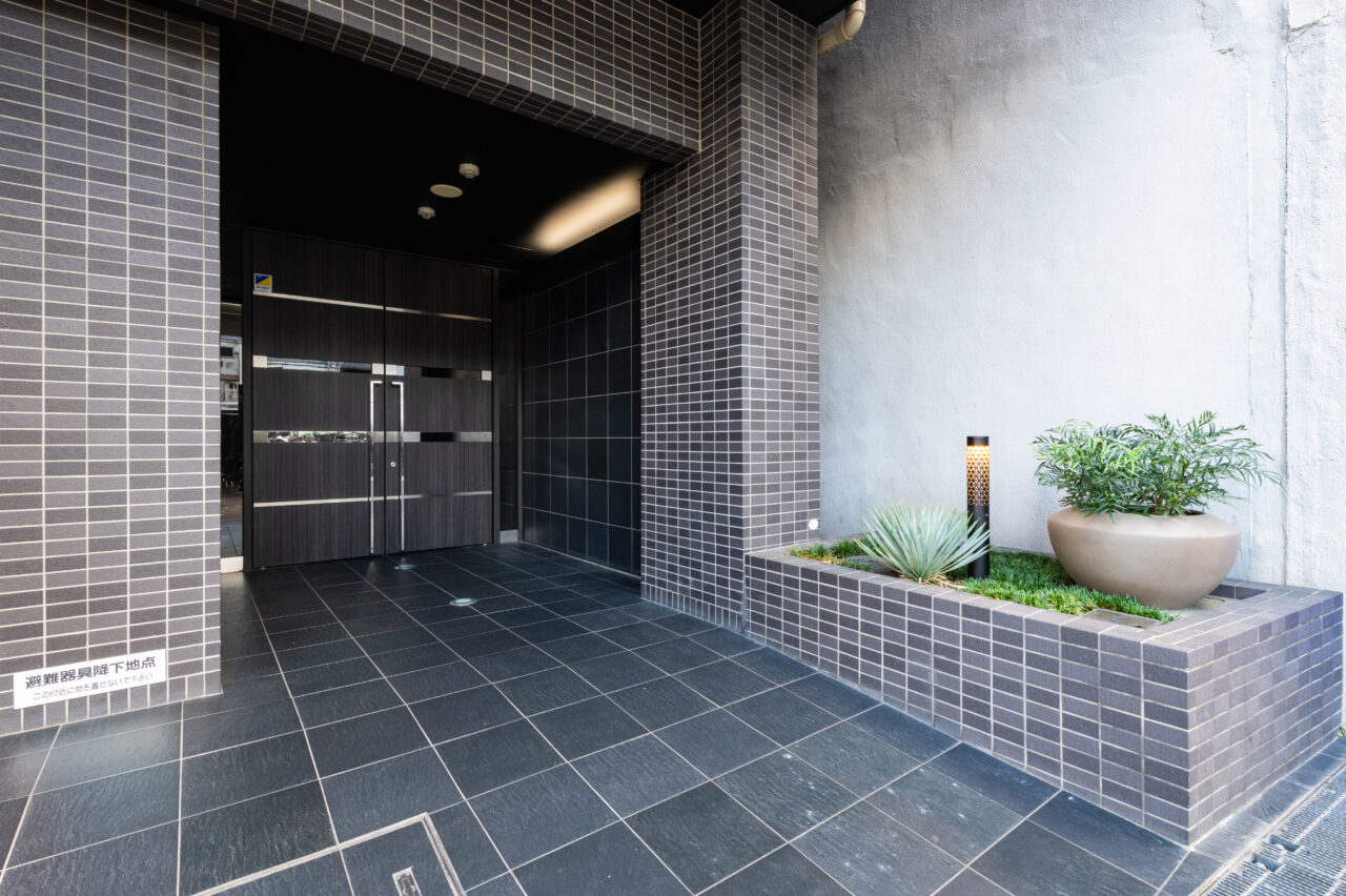 JR元町駅徒歩1分。日本三大中華街で食べ歩きを楽しんだ後は白と黒で洗練されたモダンエントランスがゆったりとお出迎え